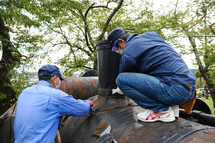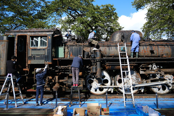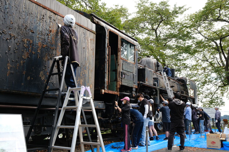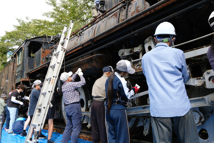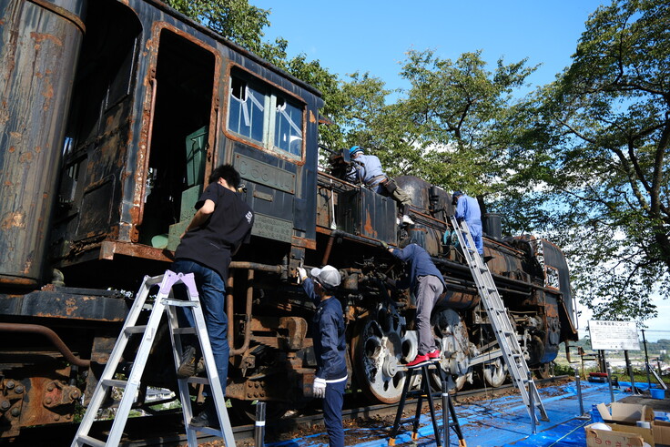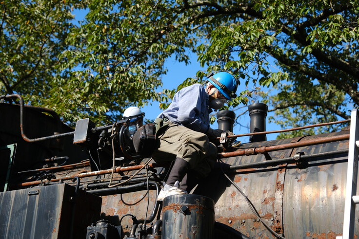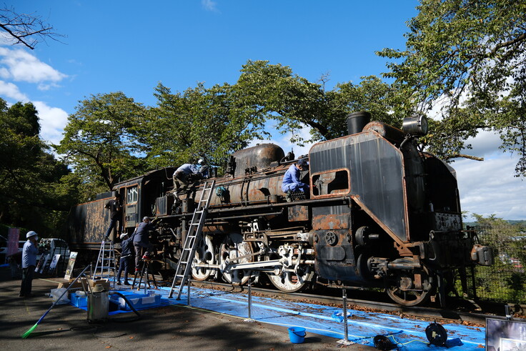 2019年12月の解体報道から約5年、SL保存運動・署名活動・クラウドファンディングと幾多の峠を越えてきたC58形114号機・愛称「シゴハチさん」ですが、本日2024年10月5日(土)大安吉日、気持ちの良い秋晴れの中、待ちに待ったボランティア修繕がスタートいたしました!!