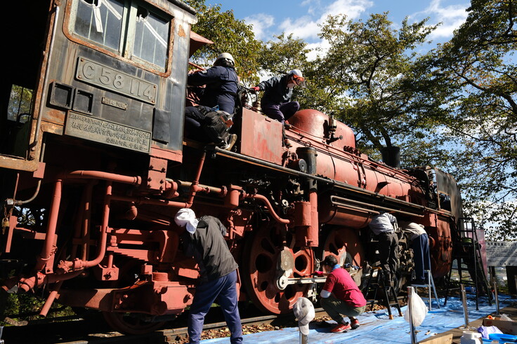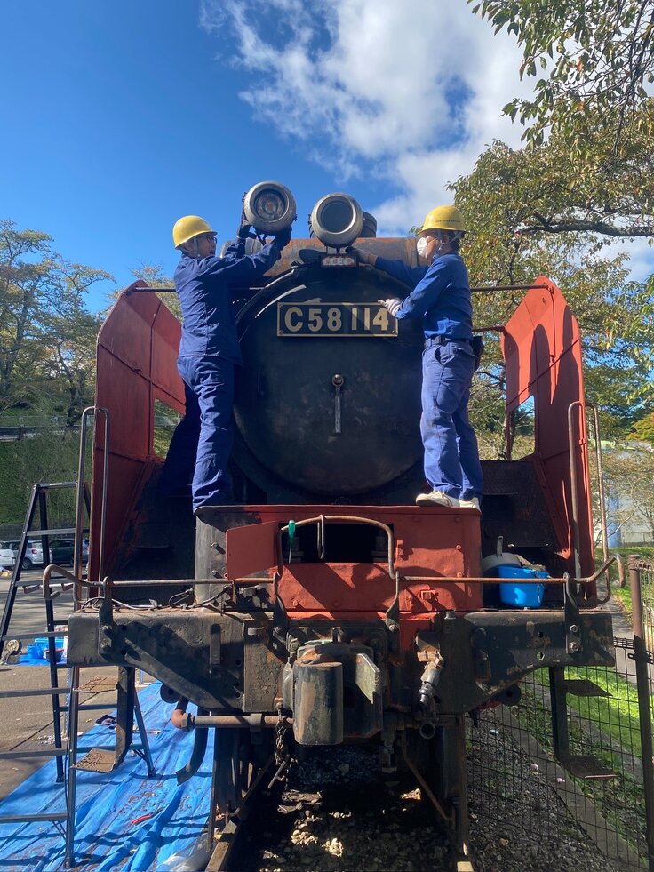 なおこちらのライトは西古川地区で保存されてきたC58形19号機から取り外したものとなります。