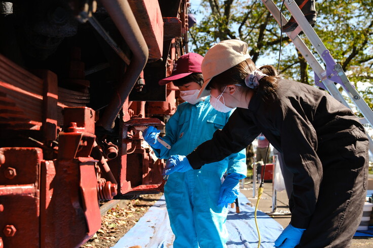 右側:会員さん(新庄機関区でお勤めだったお父様のナッパ服着用)