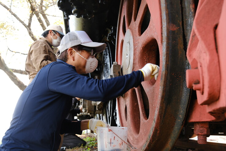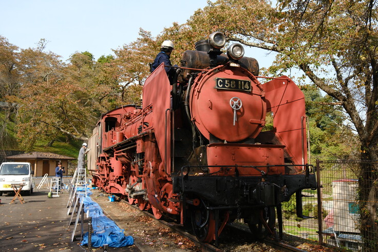 この赤いお姿のシゴハチさんも今週で見納めで、いよいよ来週からは本塗装として真っ黒の本来のお姿になっていきます。