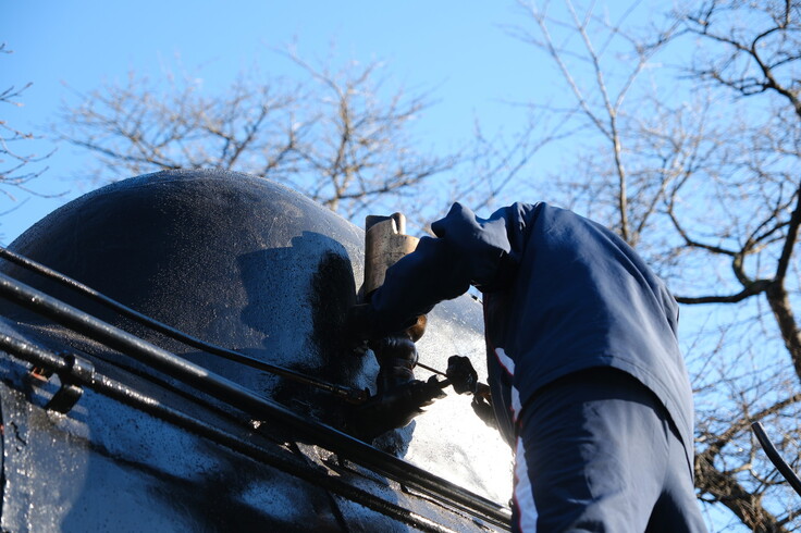 まずは引き続き鉄工所さんにご協力いただき、機関室の穴あき箇所の修繕とテンダーのナンバープレートを取付いたしました。