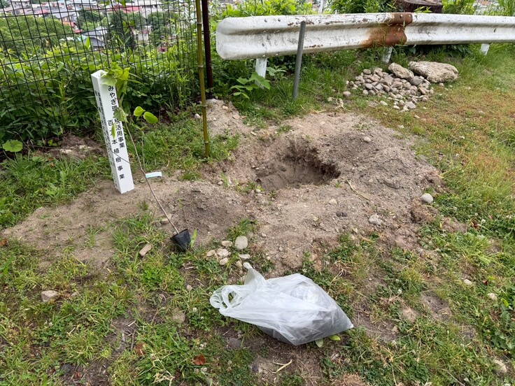 先行して一週間前に文化財課の職員様がお立会いの下、掘っていた場所になります。