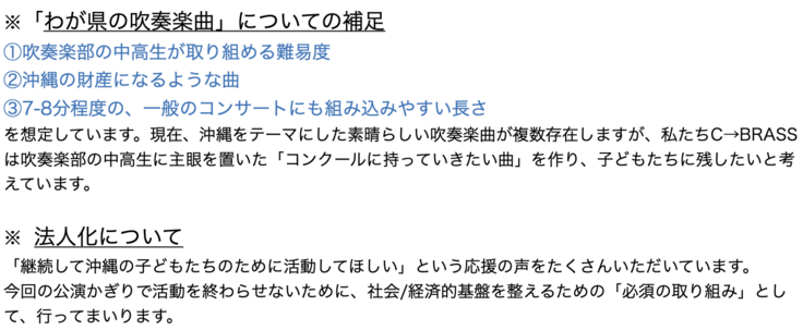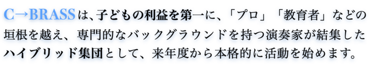 私たちC→BRASSウインドオーケストラは、本公演を出発点とし、皆さまに喜んでいただけるような活動を続けてまいります。