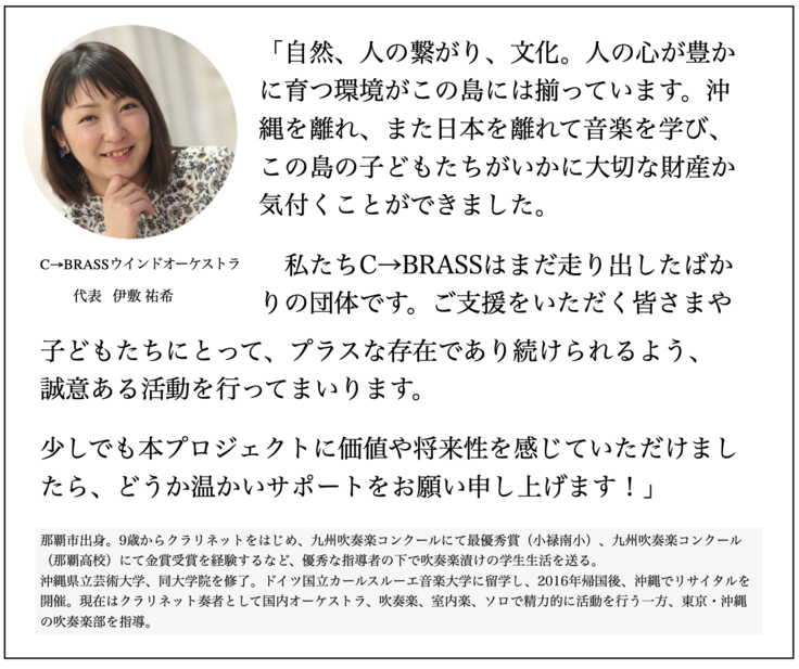 ▼コロナ禍で生の演奏を聴く機会が減ってしまった沖縄の子どもたちに、「夢」や「希望」を与えたい。