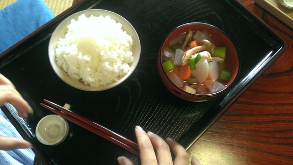(笠間焼で食べる、綺麗な水で育った美味しいごはんと野菜たっぷりけんちん汁)