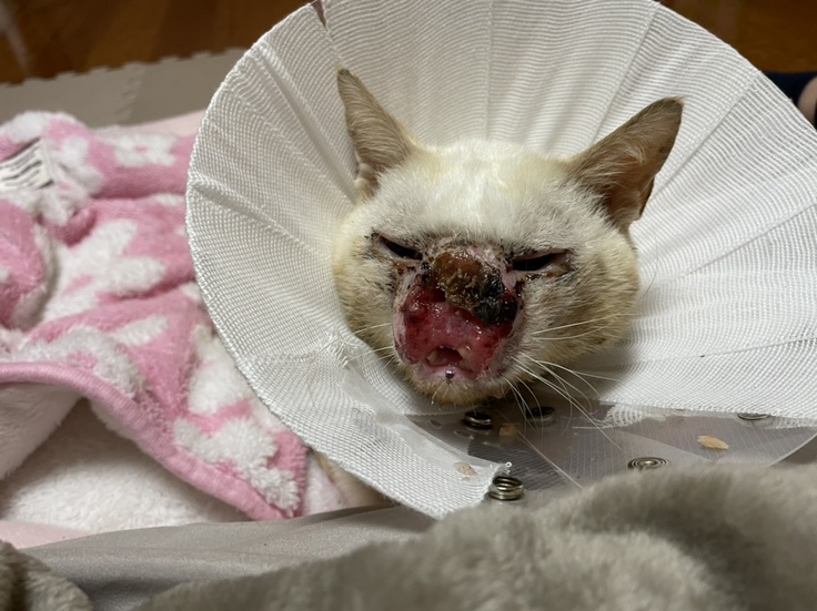赤い部分が広がり、上の方に盛り上がってしまっています。この頃はかなりぐったりしていて、呼吸も苦しそうでした。