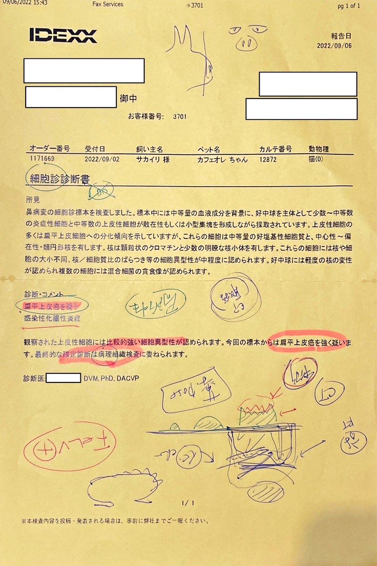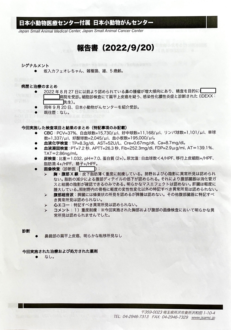 2022年8月27日 ー扁平上皮癌の疑いが判明ー