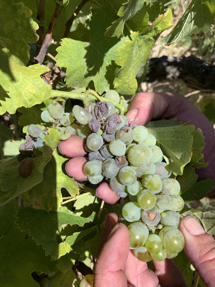 先の新着情報のブドウと比較して見ていただければ、一目瞭然。収穫の数週間前ですが、日焼けして瑞々しさもなく…。残念なことに。