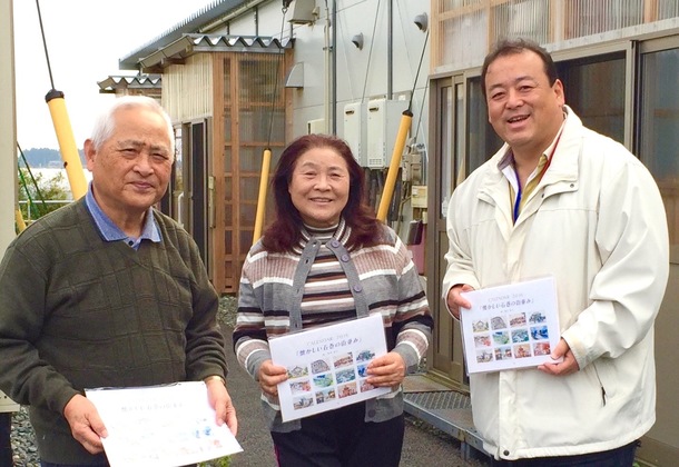 河北町の仮設住宅を回ってカレンダーをお届けしている時に、ある男性宅にお届けしたところ、父が描いた、長面海岸の水彩画をみて、感動し、「あー!あそこだっちゃあ!」と、「懐かしい!」「これ、家宝にすっから!!」とおっしゃって頂けた方がいらっしゃったんです。ものすごく嬉しかったです。