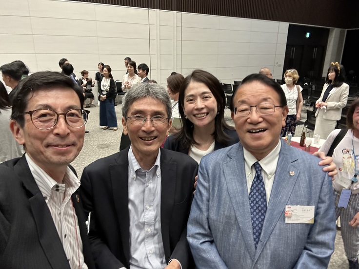 3枚目:石田卓夫会長(右)、チェリッシュライフ三宅亜希先生(後列)、物産アニマルヘルス西野正一様(左、写真提供)