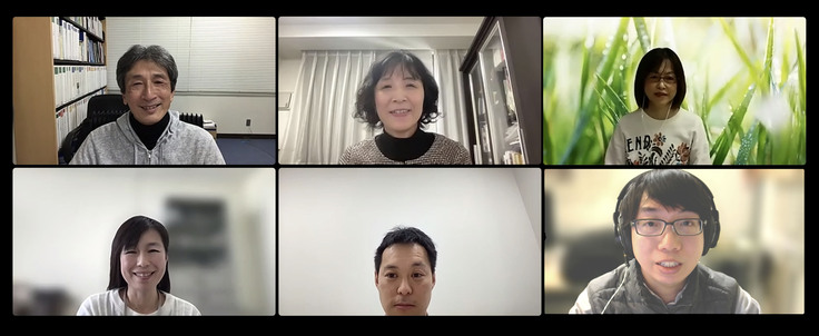 1枚目:東大西村先生とのオンライン打ち合わせの際の集合写真(上段中央西村先生、下段中央毛利先生)