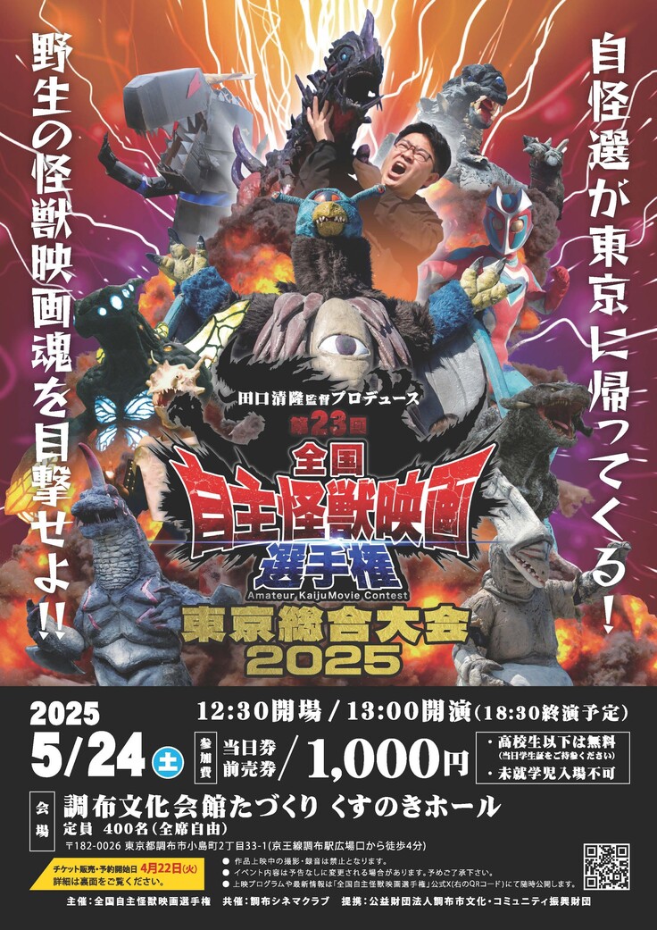 東京都調布市で開催される 第23回全国自主怪獣映画選手権 東京総合大会 において、上映作品に選出いただきました。