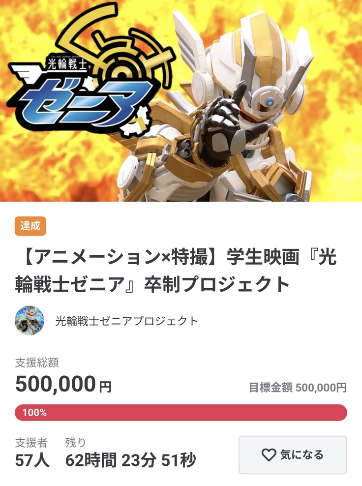 目標金額の50万円を達成!