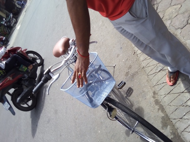 ジョンは「自転車なんて買ってどうするんだ?もう俺のトゥクトゥクに乗らないのか?」と言いたげです。