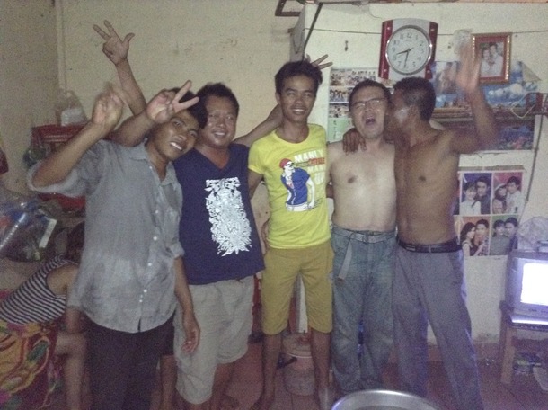 2015年旅。ジョンのプノンペンのおうちで飲んだ時の盛り上がりショットです(^_^;)