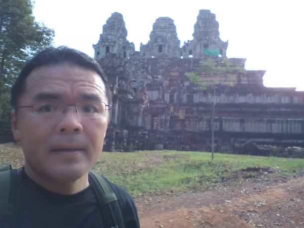 こちらも遺跡。てっぺんにいわゆる「クメールのほほえみ」と呼ばれる像があります。こうした像がいたるところにあります。