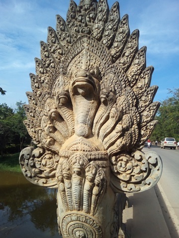 こちらがコンベンションセンターに行く途中に見つけたナーガ。橋をしっかりと守っています。