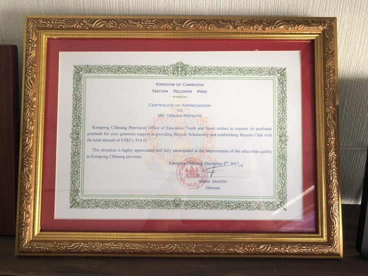 2016年と2017年の2回の功績を併せてコンポンチュナン州から感謝状を頂いちゃいました!!!私もうれしいのですが、チャンディさんの分もあったのがほんまうれしい!!!コンポンチュナン州、やるねぇ!!!すごい!!!