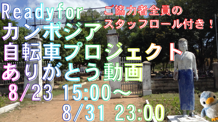 最後の1週間でご協力いただきました方々へのありがとうメッセージです! さらに最終回として、これまでご支援いただきました皆さんのお名前をスタッフロールのように流しております。