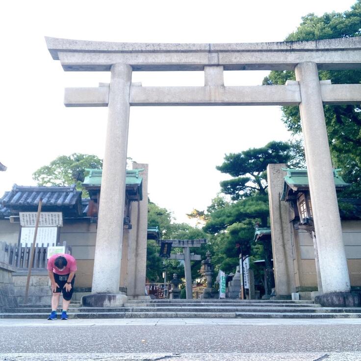 18日目。朝来市の式内石部神社です。出張最終日の朝ラン。奥に見える階段を上っていきます。朝からいい汗かきました。