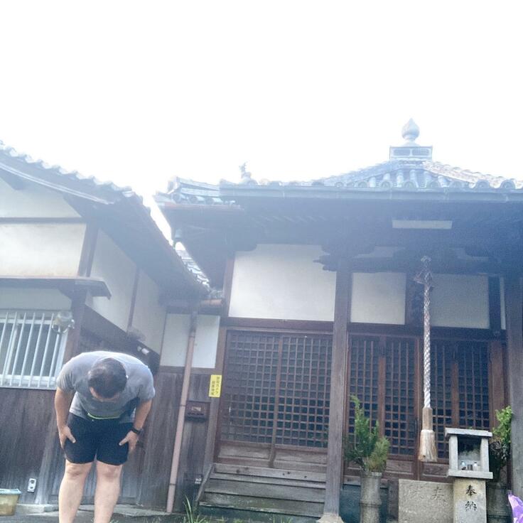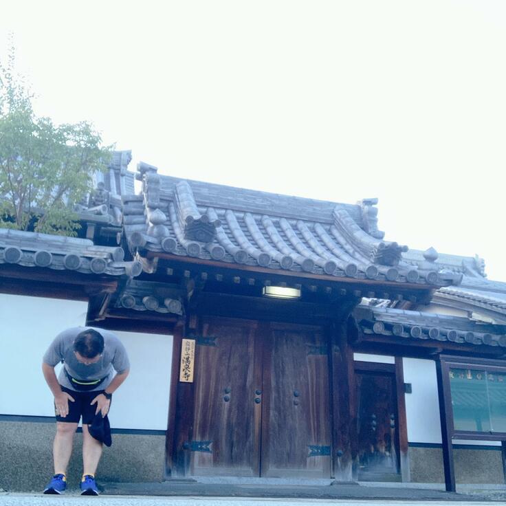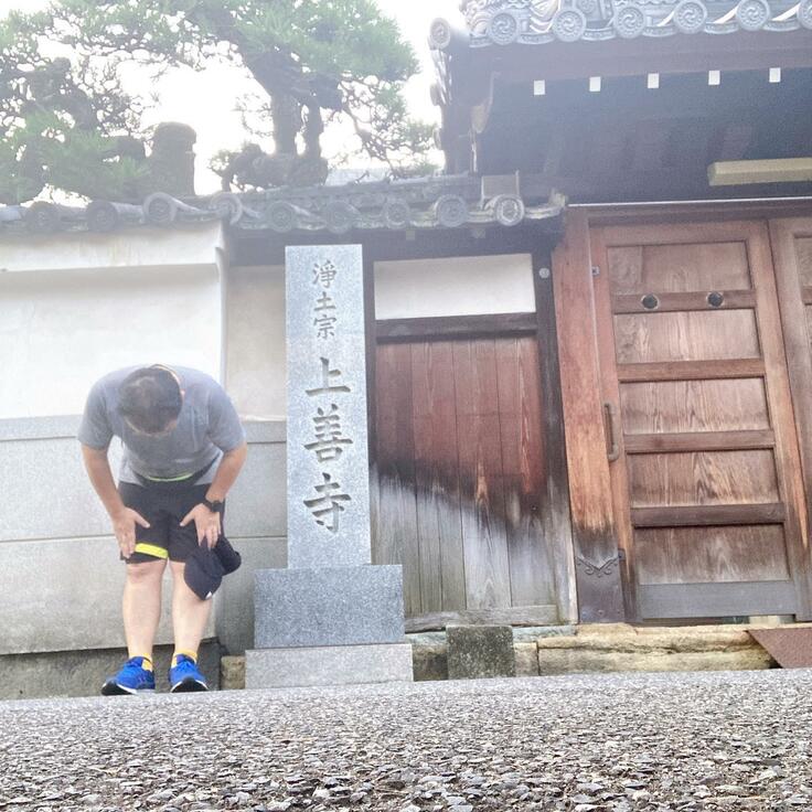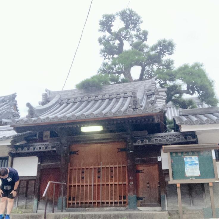 38日目。貝塚市上善寺。お寺は朝早すぎると門が閉まっていることが多く、門の前での心願成就のお願いとなりました。