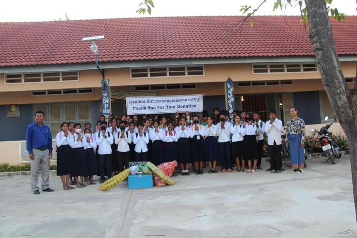 訪問したのはTUOL ANDAET中学校。到着しましたら皆椅子を並べて座っていてくれました。