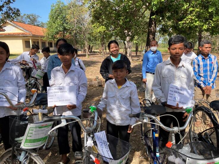 自転車をもらってうれしそうな子どもたちの写真もどうぞ。