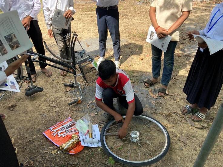 そして修理講習の始まり。真ん中の彼はおうちが自転車屋さんみたいで修理もお手の物。女子生徒の自転車がパンクしていたので直してあげていました。好感度アップしてるはず!これを機に仲良くなってね(*^-^*)
