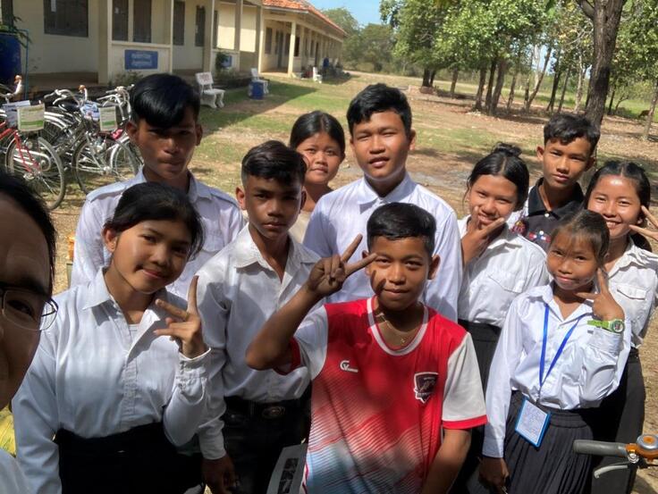 この日はプレアヴィヘア州で活動です。午前中に自転車プレゼント寄贈式、自転車クラブの設立、そして2人の家庭訪問の予定です。