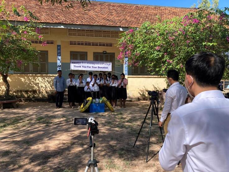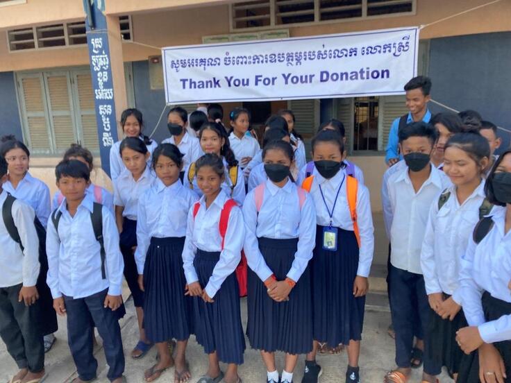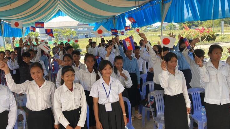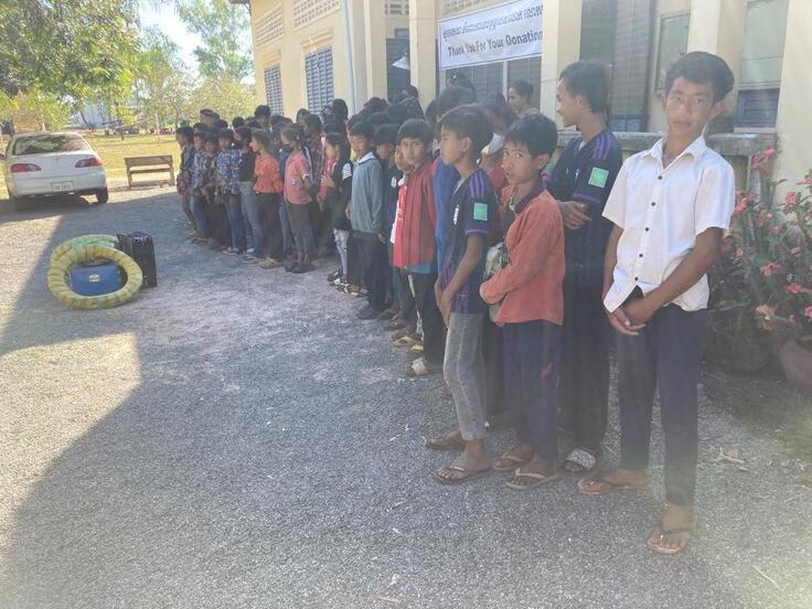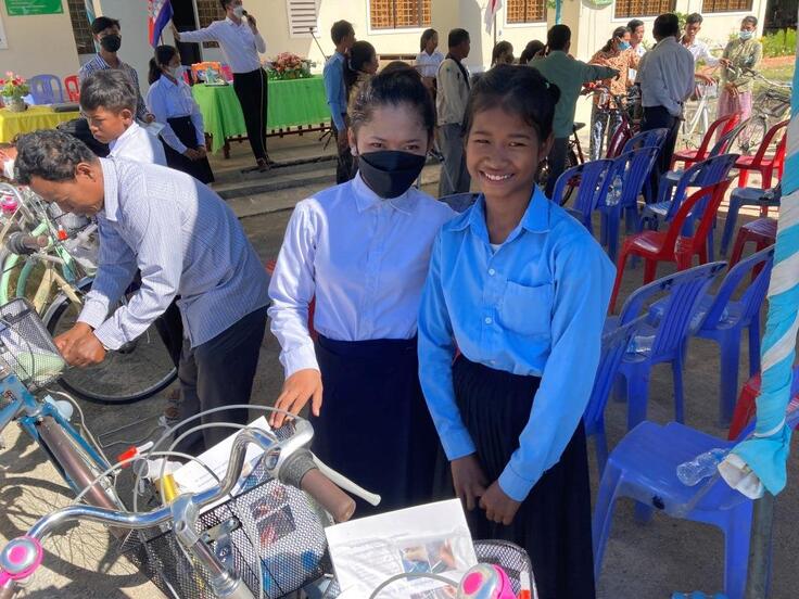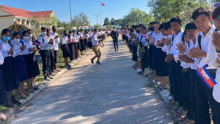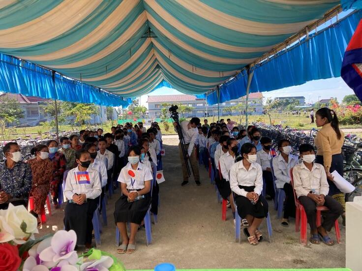 HUN SEN BARIBOUR高校にて自転車寄贈セレモニーです。学校につくと生徒たちが並んで出迎えてくれました!!