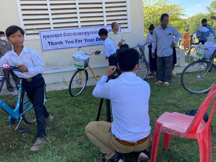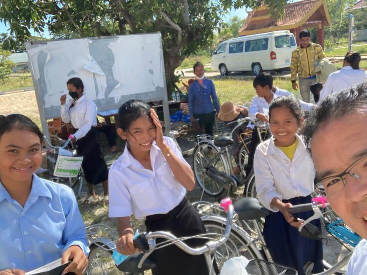 自転車プロジェクト3日目は少し間があきました。この日はコンポンチュナン州にて自転車プレゼント寄贈式と自転車クラブの4カ所のパーツ補給です。