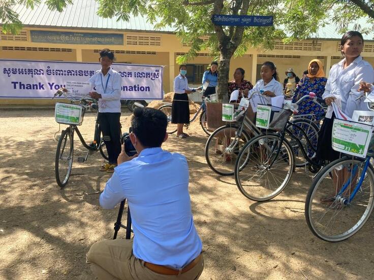 午後も同じタケオ州ですが少し離れたサムローン郡にて自転車寄贈セレモニーを実施しました。そしてこちらのサムローン郡はEDFカンボジアのもう一人のスタッフ、いつも撮影係をしてくれているヴィリャックさんの故郷だったりします。今日はお二人の故郷の支援ができるという何だかとってもうれしい日なのでした。