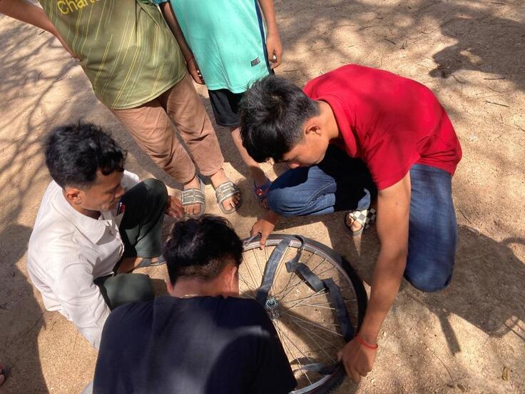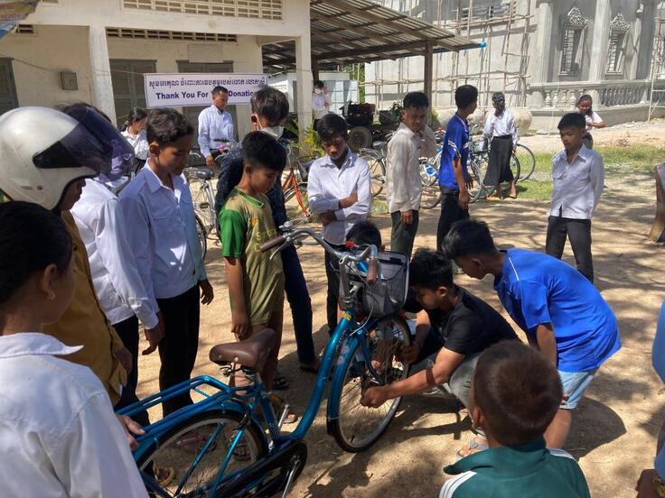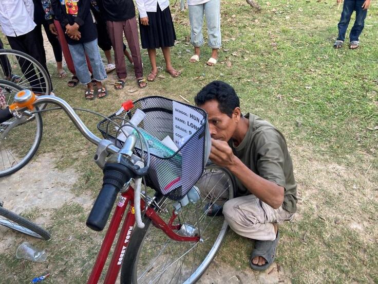HUN SEN ANG BREI中学校にて自転車修理クラブの設立