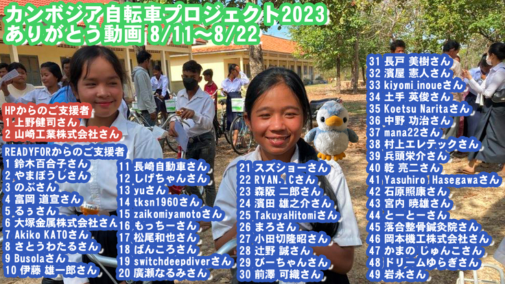 自転車プロジェクトのご協力者へのありがとうメッセージパート3