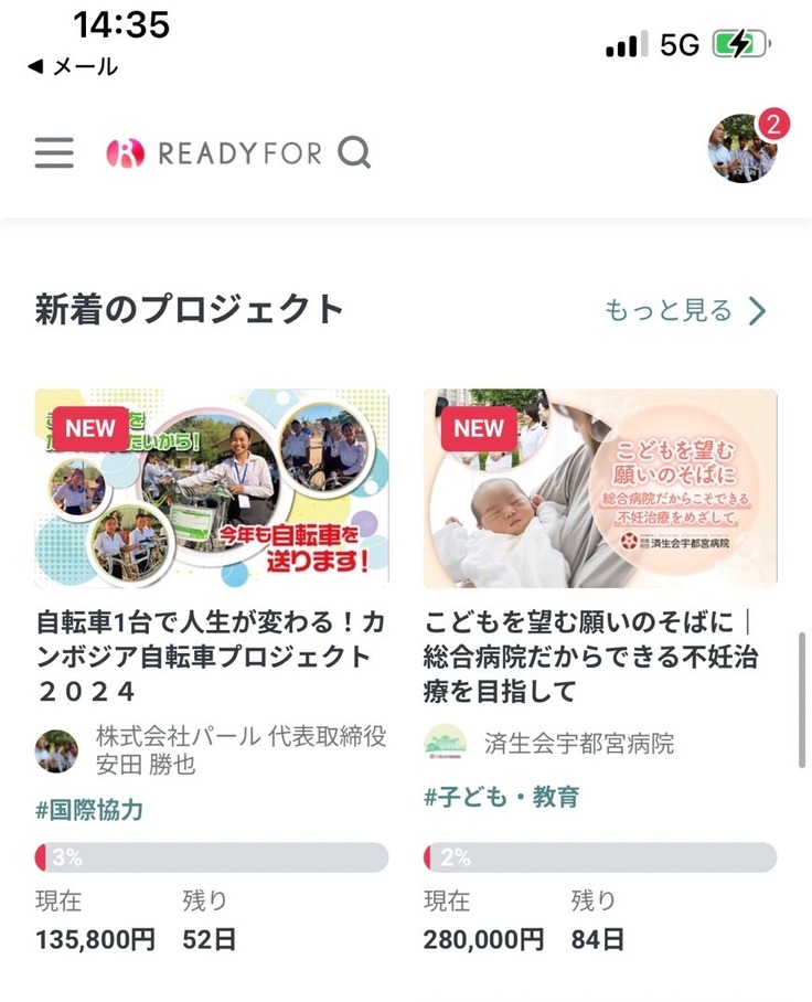 READYFORさんのトップページに「新着のプロジェクト」コーナー、しかも先頭に表示してくれました。数あるプロジェクトからどう選定されるかよくわかっていないのですが、『開始間もないことと、開始時にある程度支援の申し込みがあったプロジェクト』と勝手に推測しております。