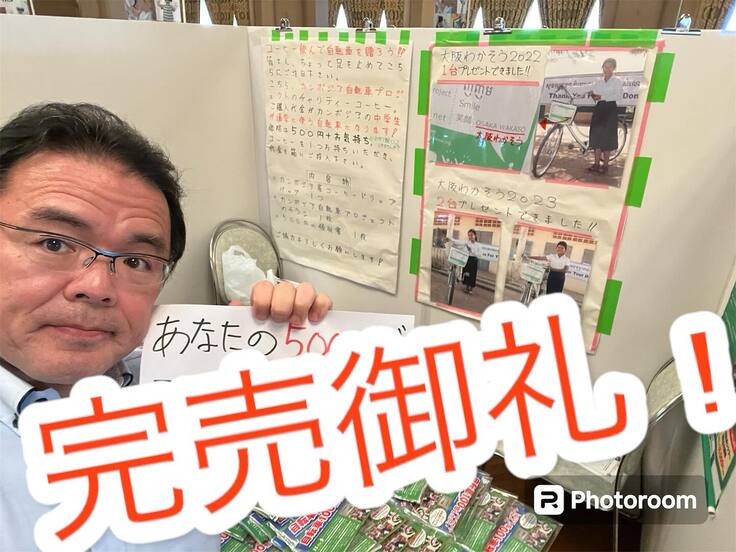 計5万円の協力金。もちろんこれはREADYFORさんの支援金とは別扱いなので組み込むことはできません。売上50000円、原価5000円、利益45000円。もちろん自転車支援に全投入します。