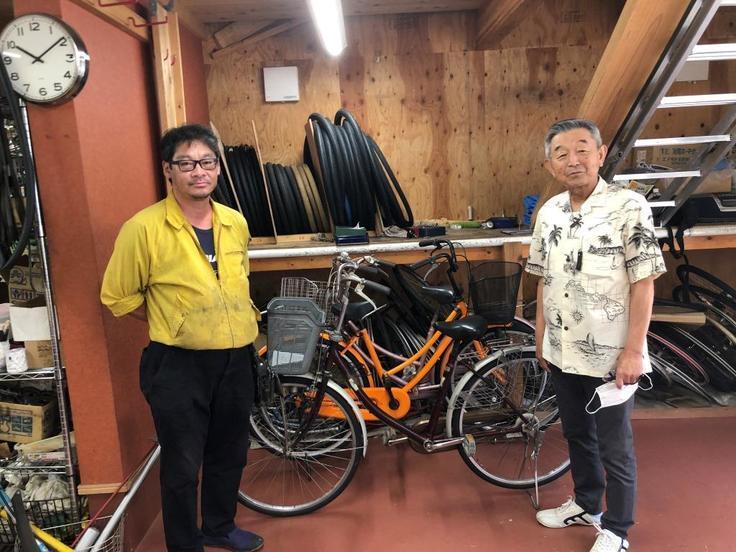 このマニュアル作成、安田が自転車整備を習うところからスタートしました。プロジェクトが始まったとき、私は自転車の修理を教えてもらいました。NPO法人街かど福祉では障がい者さんが自転車整備をして販売しています。法人の豊田さんや北さん、そして自転車整備担当の進藤さんの協力を得て自転車整備の方法を教えて頂きました。こちらが北さんと進藤さんのお写真です。