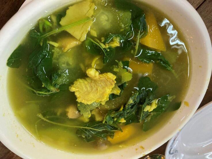 魚とパイナップルのスープ。前日と同じメニューですが、これがコンポントム州の名物なんだとか。