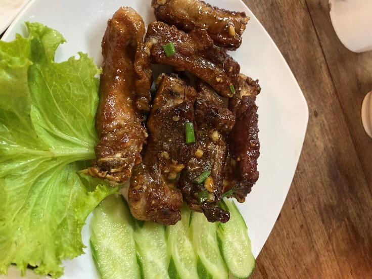 鶏肉の素揚げ?炒め物?基本的に鶏肉は骨のままぶつ切りです。