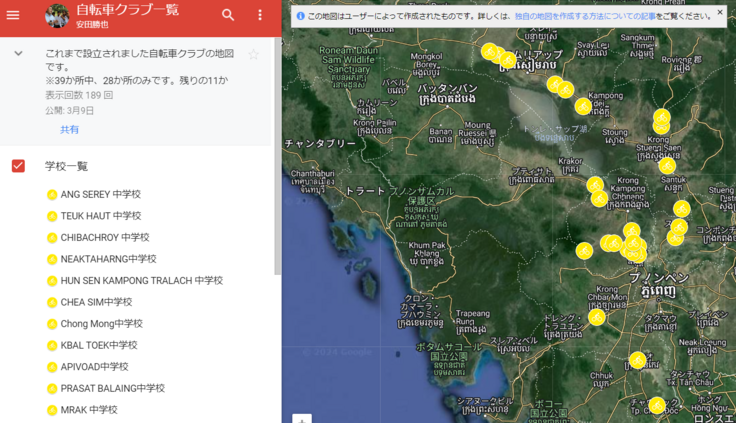 今年の3月に「もしかしたら写真に残っているGPS情報で自転車クラブマップが作れるかも・・・」と思い立ちGoogle上に地図を作成してみました。残念ながら11か所はGPS情報が残っておらず28か所のみですが・・・皆さん是非ご覧ください。