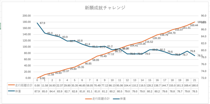 心願成就チャレンジ 第3週目ご報告(減量:9.4キロ! 走行距離:180.09キロ)