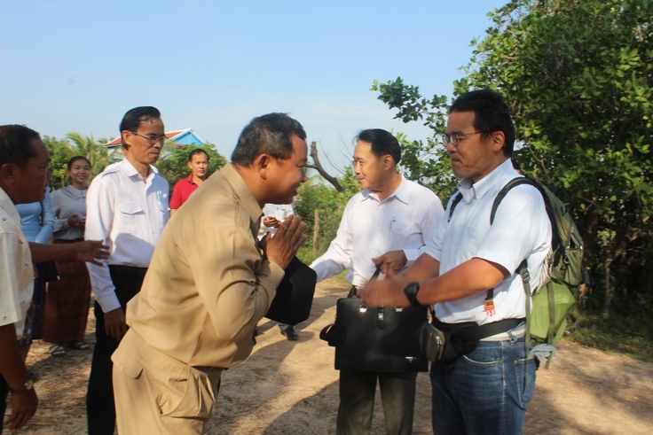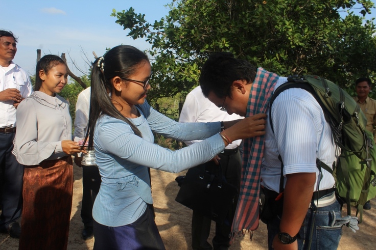 で、いつものクロマーをかけてもらう儀式。いつもの通り照れますねぇ。コンポンチュナン州に来たときはいつもこの先生がクロマーをかけてくれます。