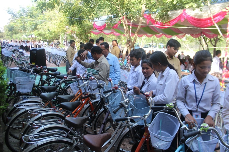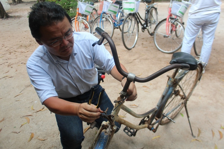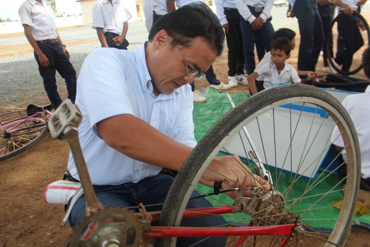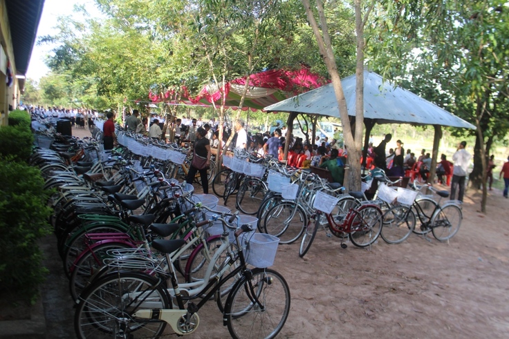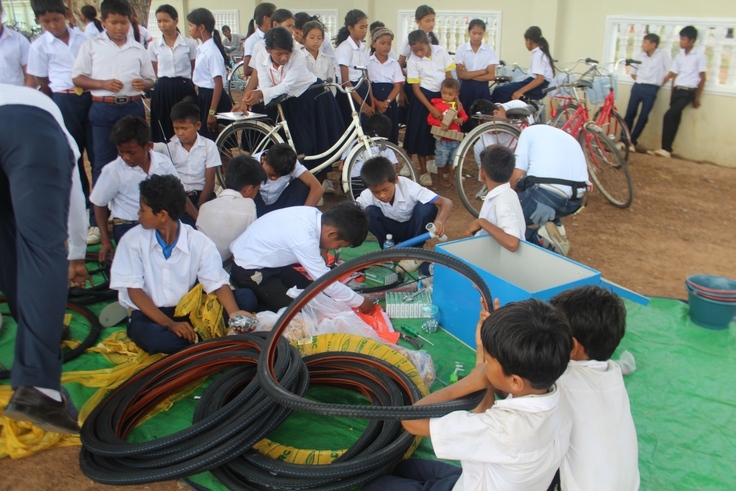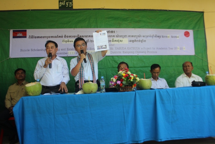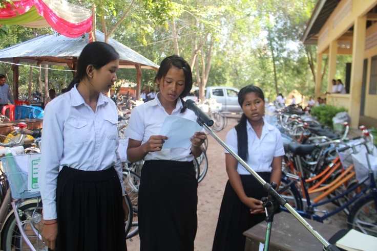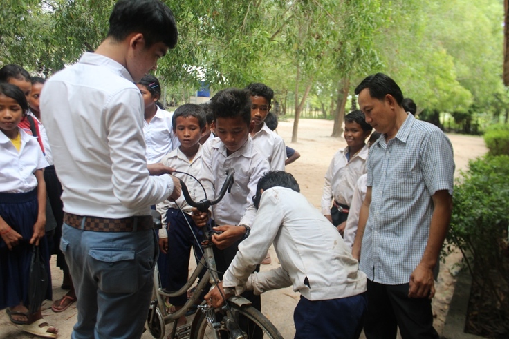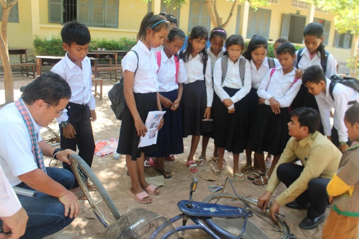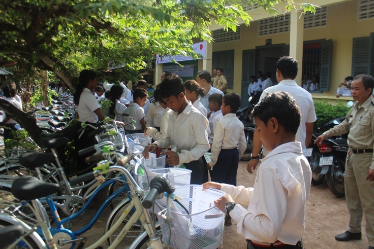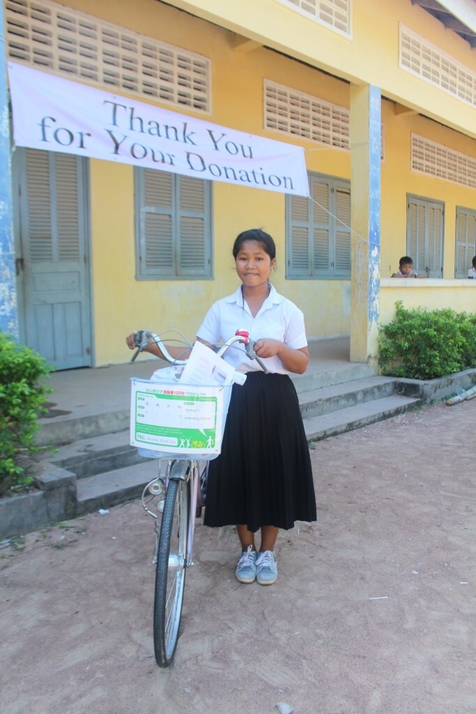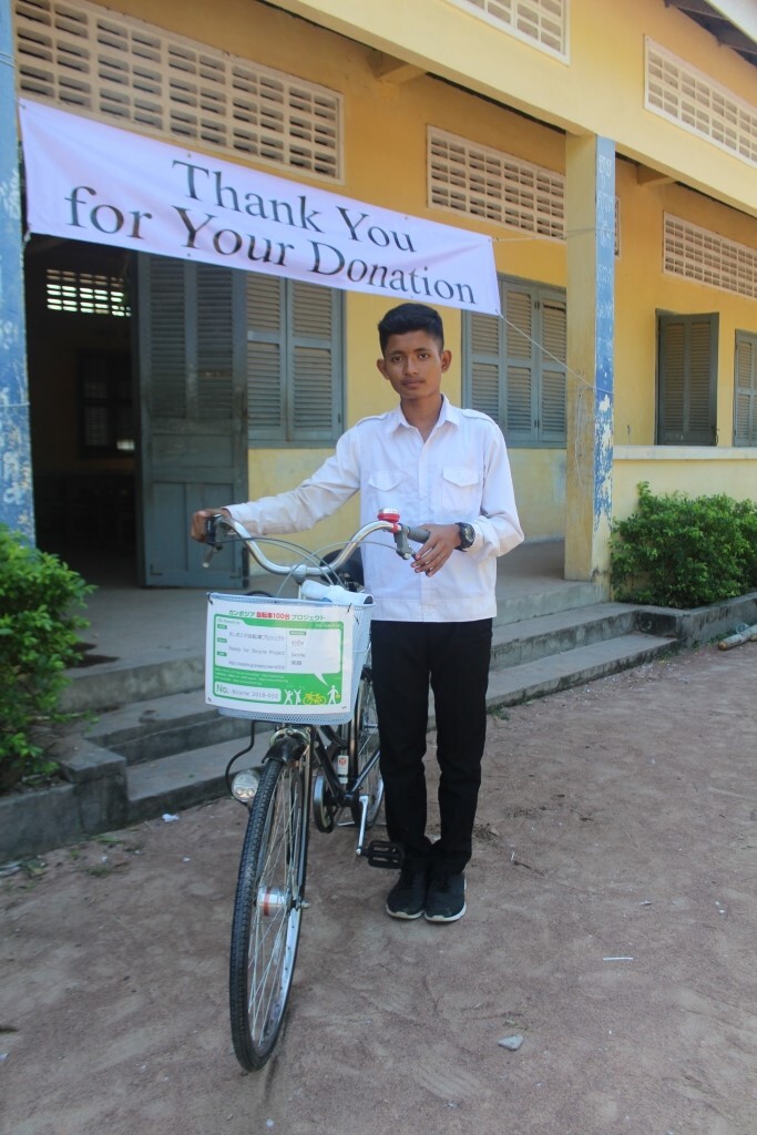 私がカンボジアに初めてきたのは3年前です。そのときも農村地域の学校や家庭を訪問しました。そして通学に自転車が必要だと痛感したのです。日本には使われなくなった中古自転車がたくさんあります。修理すればまだまだ乗れるものばかりです。皆さんはきっと親の仕事の手伝いや弟・妹のお世話などで忙しいでしょう。でもこの自転車があれば通学の時間を短縮できるし、安全に家に帰ることができます。