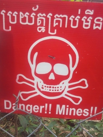 これが地雷の除去が終わっていない地区に掲げられている看板。英語とクメール語で「危険!地雷!」と書かれています。2015年のデータですが年間の地雷や不発弾による被害者は111人(死者18人、負傷者93人: うち手足切断23名 )だったそうです。1996年が地雷等での死者がピークで911人。その50分の1に減少したということです。これらのデータは毎年カンボジアの地雷対策局(https://www.cmaa.gov.kh/:英語)から発表されています。ニュースは大域的に50分の1に減ったことで経済の発展につながることなどへの期待を報じていますが、やはり被害者が111人もあって本人はもちろんその家族などにも深い悲しみがあることを思ってしまうのです。