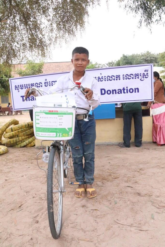 また、忙しいなかプレゼントをした子どもたちが嬉しそう自転車と写ってる写真を送ってくれます!その子どもたちの光り輝く目がとても印象的です♪家の手伝いをしながら、毎日何時間もかけて学校へ通う子どもたち!少しでも通学が楽になり夢に向けて一生懸命頑張っている子どもたちへの支援をこれからも続けていきたいと思います!』