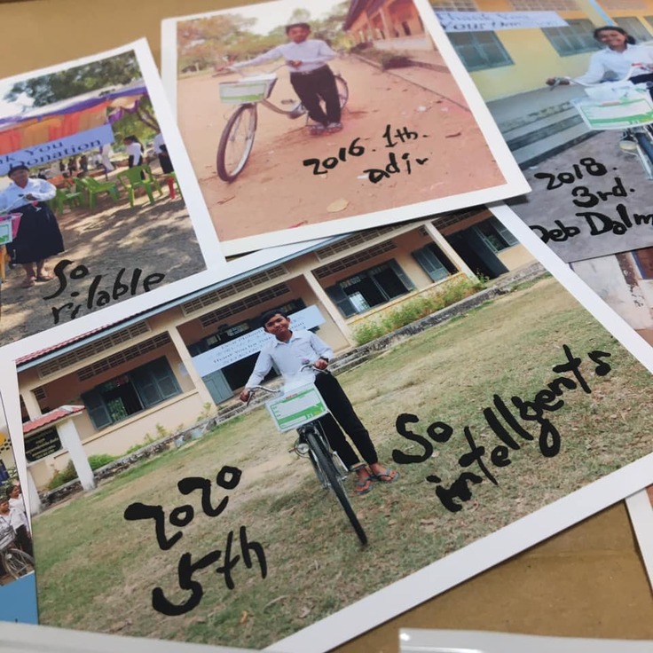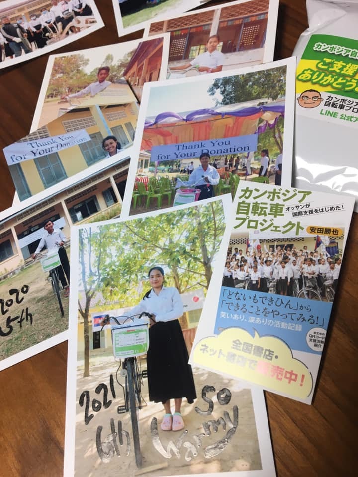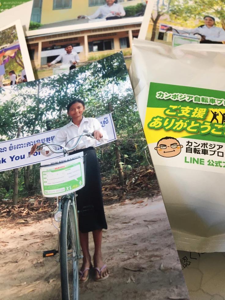 カンボジア自転車プロジェクトを始めて2016年の12月に訪問する際、「カンボジアの子ども達にとってはサンタクロースみたいですね。」と言ってくれたことを覚えています。そんな彼女はずっと毎年1台の自転車支援を続けてくれています。