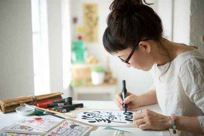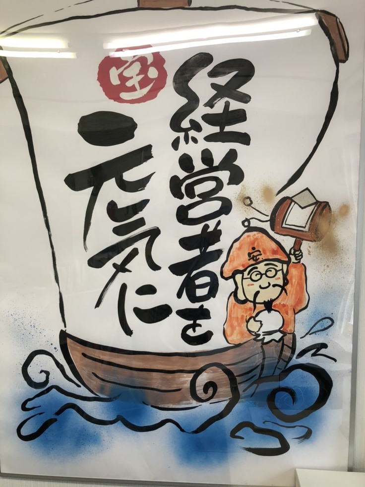 まずはこちら。1枚目の写真はPOPを描いているところ。POPの制作に加え、POP作成レッスンの先生もされています。さらには展示会のブース作成支援や商品ラベルのデザインなんかも。とにかく描くことが得意なもっちーには、実はうちの事務所にも特大パネルがあったりします。