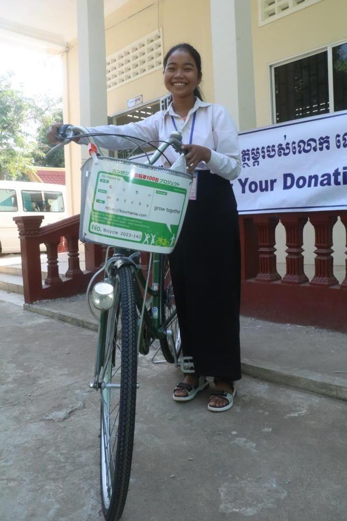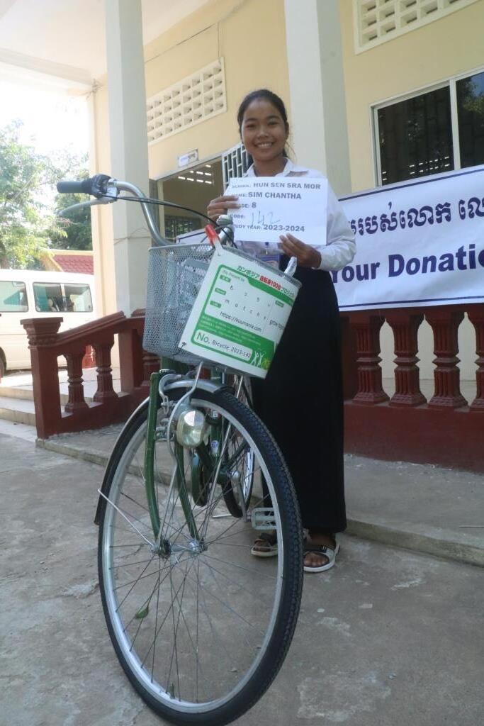 この年彼女は自転車を手に入れました。通学時間が短縮され、勉強する時間、親を手伝う時間などに充てられるでしょう。そして帰宅時に遅くなることもないので女子生徒に降りかかる夜の危険性も軽減されます。これからの素敵な未来を自ら切り開いてくれると信じています。