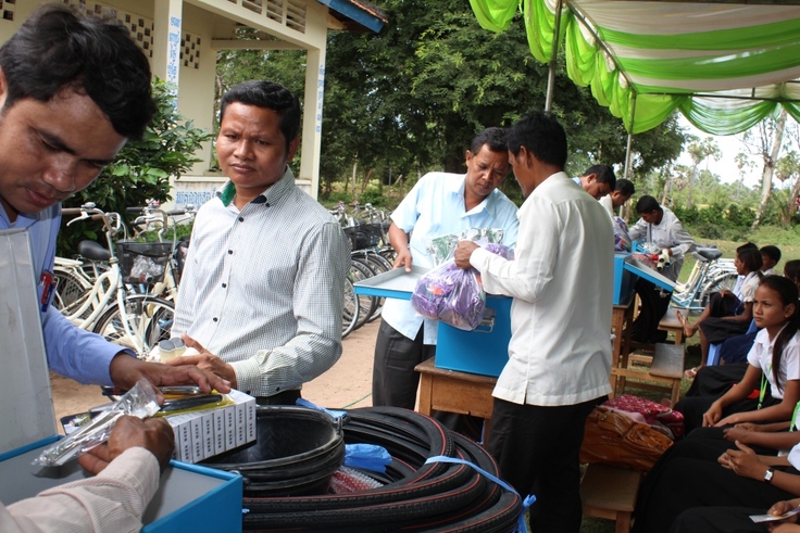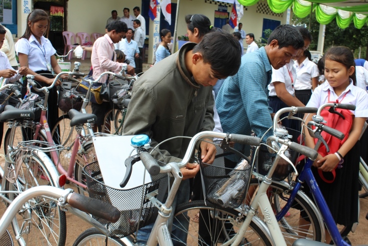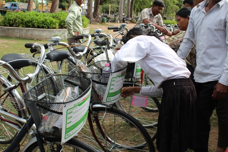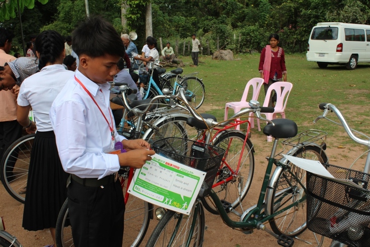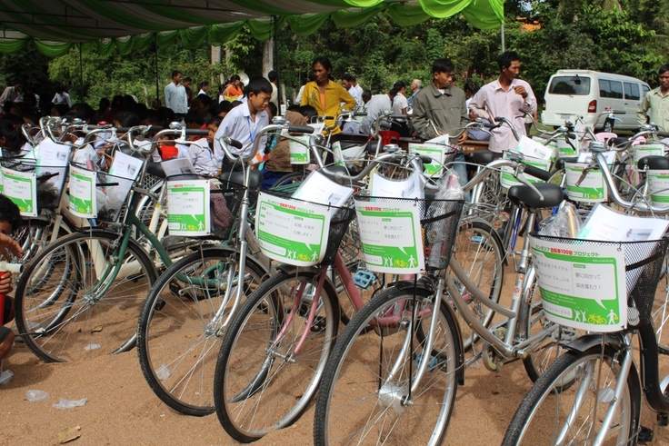 皆さん、いかがでしたでしょうか。これが一番最初の自転車プレゼントセレモニー。カンボジアの子ども達のたくさんの笑顔、親御さんのたくさんの笑顔、学校の先生方のたくさんの笑顔が生まれます。この自転車でたくさんの子ども達が学校に通い続けられます。