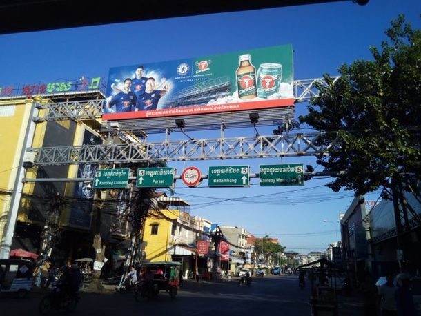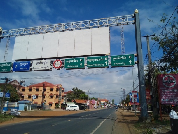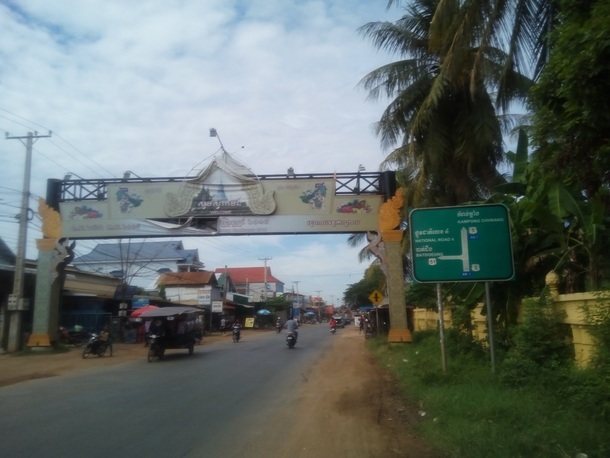 いよいよコンポンチュナン市に突入の看板。ここからまだ少しあります。ヒーコラヒーコラ、吐き気を我慢しての自転車旅は本当にしんどかったです・・・どこかで涼まないと・・・